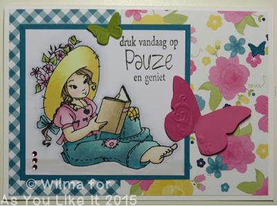 Well my favourite hobby is designing and colouring in..So here is a card I made using one of our image. I love to sketch new images so I gust this one fits perfectly. I might look like her sometimes when I do paint lol!